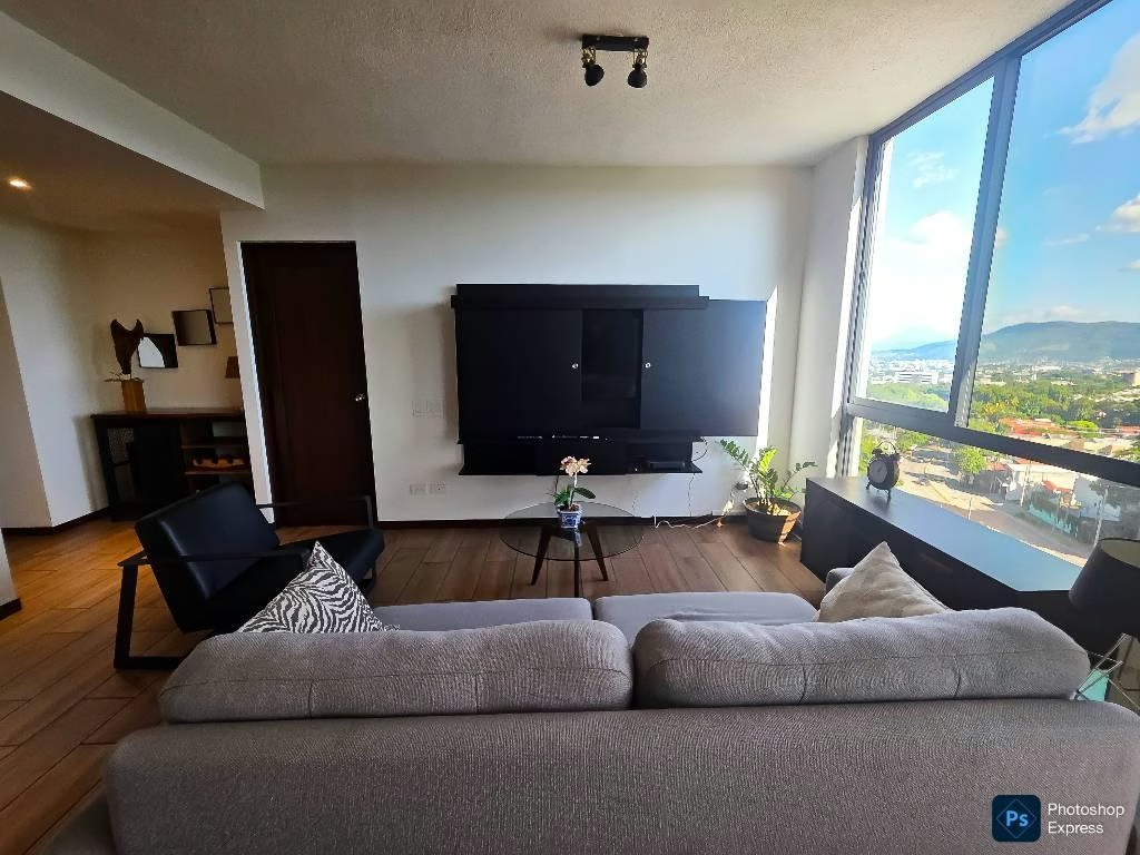 Apartamento seminuevo en Altos Tower, Colonia Escalón, San Salvador. Full amueblado con impresionante vista a toda la ciudad desde la sala, habitaciones y terraza. Características: - 3 habitaciones (1 principal + 2 Jrs.) - 2 baños completos - 118 m² de construcción - 2 estacionamientos techados + parqueo de visitas - Año de construcción: 2023 Distribución: • Sala con terraza y vista panorámica • Comedor • Cocina con pantry • Habitación principal con A/C, baño completo y closet • 2 habitaciones Jrs. con closet y baño compartido • Área de servicio completa con calentador • Refrigeradora, microondas y estufa incluidos Amenidades del condominio: • Piscina • Gimnasio • Áreas sociales interiores y exteriores • Sala de reuniones • Área de BBQ • Escaleras de emergencia • Pet friendly Ubicado en una de las zonas más exclusivas de San Salvador, con vista a montaña y a la ciudad.